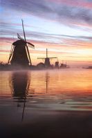 Koop de foto Kinderdijk zonsopkomst met mist van Roy Poots op canvas, aluminium dibond, (ingelijste) fotoprint, behang en ArtFrame, op maat geprint in Fine-Art kwaliteit.