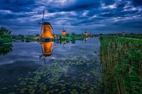 Eenmaal per jaar worden de beroemde Kinderdijkse molense van Unesco werelderfgoed verlicht.