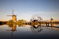 Mooi strak water met een fraaie spiegeling van de Kinderdijkse molens.