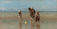 Dit prachtige schilderij, getiteld 'Kinderen der zee' van Jozef Israëls laat vier kinderen zien die spelen met een speelgoed zeilbootje in het water aan het strand...Alleen is de versie iets bij gepoetst... Het zeilbootje is vervangen voor een vrolijk knal geel badeendje!
