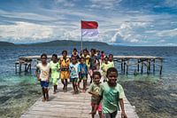 Kinderen lopen met de Indonesische vlag van Anges van der Logt