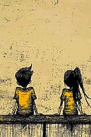 Dit ontwerp toont een minimalistische en emotionele weergave van twee kinderen die samen op een bankje zitten. Het abstracte lijnenspel en de zachte aardetinten brengen een gevoel van nostalgie en eenvoud naar voren. Perfect als wanddecoratie voor moderne interieurs of kinderkamers, voegt dit kunstwerk een serene en betekenisvolle sfeer toe aan elke ruimte. Ideaal voor liefhebbers van minimalistische kunst en rustige ontwerpen.