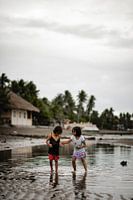 Kinderen op het strand in vissersdorpje in Filipijnen