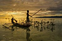 Deze kinderen vissen bij Arborek eiland in Raja Ampat, Papoea, Indonesie. Air Beroi Island (Biak: Arborek) is een eiland in het district Meos Mansar, in het regentschap Raja Ampat, in Zuidwest-Papoea. Sinds 2009 is het een toeristisch dorp. De bewoners van het eiland zijn afhankelijk van de zee en werken als vissers. Sinds de status van toeristisch dorp zijn sommige bewoners echter gidsen, herbergiers, touroperators en wevers geworden. Het eiland heeft een beperkte hoeveelheid schoon water en groenten, die beide uit Waisai worden aangevoerd. Het enige beschikbare brakke water op het eiland wordt gebruikt voor toiletten en toiletten.