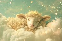 Deze betoverende illustratie toont een slapend lammetje, genesteld op zachte wolken onder een fonkelende sterrenhemel. De zachte pastelkleuren en gedetailleerde weergave van de sterren creëren een dromerige en rustgevende sfeer, perfect voor een kinderkamer. Ideaal voor ouders die op zoek zijn naar een liefdevolle en magische muurkunst om een vredige omgeving voor hun kinderen te creëren. Een prachtig cadeau voor dierenliefhebbers en een charmante toevoeging aan de wereld van elk kind.