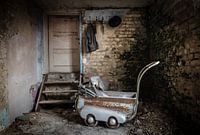 Een prachtige oude kinderwagen staat in een verlaten in vervallen huis, het is een lage antiek kinderwagen, geweldig mooi. Aan de muur hangen nog een jas en een hoed aan de kapstok, ook verlaten en vergeten. Al decennia heeft hier niemand meer geleefd, gewoond, gewerkt. De bewoners zijn op een dag vertrokken en hebben hun bezittingen achtergelaten. Ook deze prachtige kinderwagen staat al tientallen jaren in zijkamer van het vervallen huis.