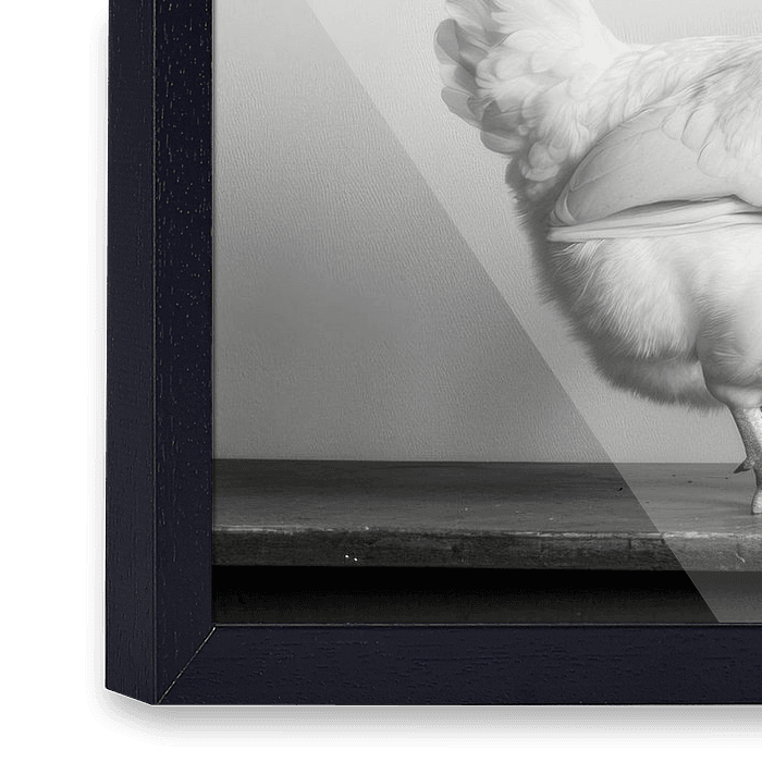 Hier ontvouwt zich een charmant samenspel van traditie en humor: Een nieuwsgierige kip benadert een oude kookpot alsof hij zijn eigen recept wil maken. Het monochrome palet versterkt de nostalgische charme en geeft de keuken een uitnodigende, creatieve sfeer - perfect voor culinaire inspiratie en gesprekken!