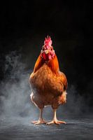 Een majestueuze kip duikt op mysterieuze wijze op uit de mist en trekt ieders aandacht. Met zijn prachtige verenkleed en zelfverzekerde blik voegt hij een leuke toets toe aan elke keuken. Dit kunstwerk creëert een gezellige sfeer en verlevendigt de sfeer bij het samen koken en eten.