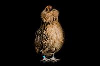 Deze antwerpse baardkriel kan heel goed poseren. Haar mooie veren komen goed uit in het licht van de studio. Haar grote ogen zijn prachtig bruin. Deze deftige baardkriel met kleurslag patrijs heeft niet alleen prachtige ogen maar ook een heel mooi verenpakket. Grappig met haar grote baard en hoe ze haar korte pootjes neerzet. Het kleine kipje is gefotografeerd tegen een diep zwarte achtergrond en op een licht reflecterende ondergrond. Hierdoor wordt het een chique en luxe beeld. Een sereen beeld waardoor de kriel prachtig uitspringt door het gebruik van flitslicht. Van twee kanten is het kipje belicht. De veren zijn lichtbruin met donkerbruin en juist daardoor past deze foto in ieder interieur.