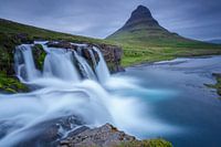 Kirkjufellsfoss waterval in IJsland gemaakt bij bewolkt weer met een lange sluitertijd