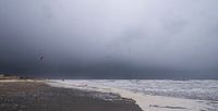 Deze kitesurfers kiezen een winterse Noordzee om te surfen. Het kan nog net, want er komt een flinke bui aan!