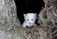 Koop de foto Kitten poes in boomholte van Marcel van Balken als print op canvas, aluminium dibond, (ingelijste) fotoprint, behang en ArtFrame. Voor jou op maat geprint in Fine-Art kwaliteit.
