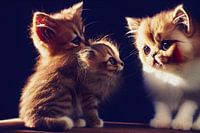 Twee schattige kleine katjes hebben kattenkwaad uitgehaald. De derde, iets oudere kitten, zou nu wel eens willen weten wie van de twee de onheilbrenger was.