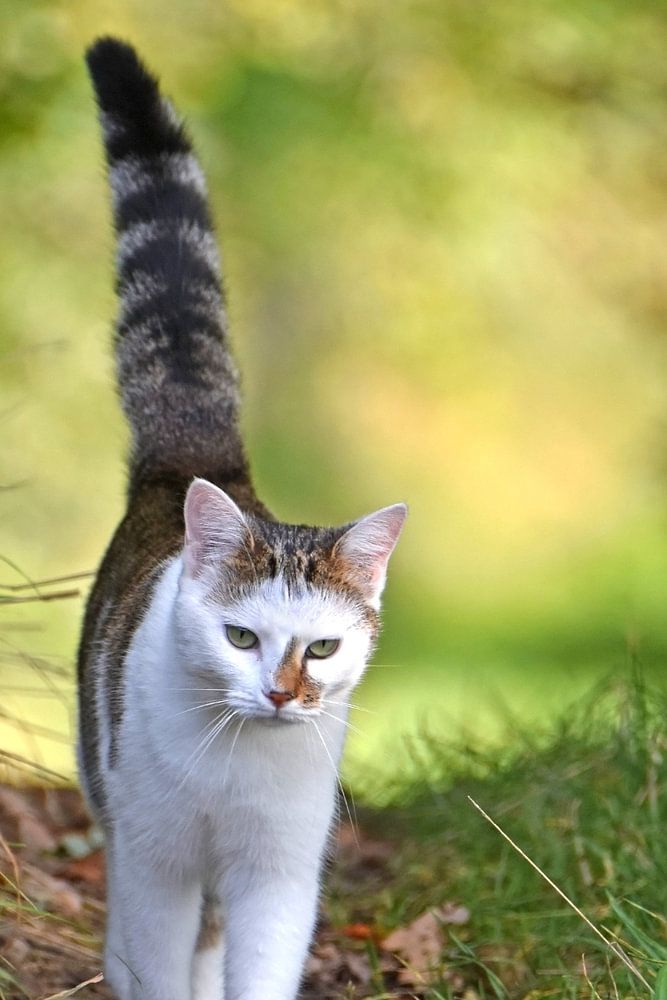 Een mooie kat zwerft door de weide