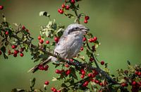 Klapekster in een boom met besjes
