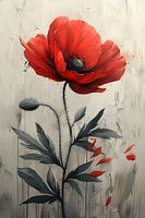 Dit schilderij benadrukt de elegante eenvoud van de klaproos met rijke rode tinten die subtiel contrasteren met een zachte achtergrond.