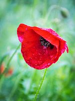 Koop dit bloemen kunstwerk Klaproos in de regen van Rietje Bulthuis op canvas, aluminium dibond, (ingelijste) fotoprint, behang en ArtFrame, op maat geprint in Fine-Art kwaliteit.