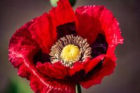Klaproos in volle glorie met precies het zonlicht in het midden van de knop