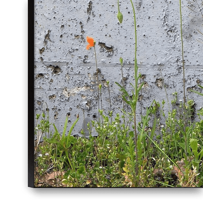 Tegen een verlaten industrieterrein, waar vergane betonnen muren het verhaal van verloren glorie vertellen, ontstaat er een onverwachte symbiose tussen de natuur en het menselijke verval. Het is hier, te midden van de troosteloosheid, dat de schoonheid van rode klaprozen opbloeit.