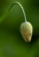 Macro foto van een klaproosknop. Opvallend is de Grote klaproos, Papaver rhoeas, vaak te zien in grote aantallen op bermen of taluds langs net nieuw aangelegde wegen in kleiige streken. Maar als de bodem met rust gelaten wordt verdwijnt ze allengs. De donker scharlakenrode kleur van de tamelijk grote bloemen vallen op ook in de…