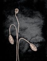 zwarte afbeelding met reliëf en klaproos zaden.
