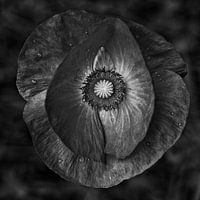 Close-up van een kleine wilde papaverbloesem in zwart-wit. Een vaak gefotografeerd en toch altijd spannend motief: persoonlijk ben ik gefascineerd door de papaverbloesem vanwege haar delicate en kwetsbare aard en toch groeit ze vaak in kale en vijandige gebieden.