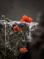 In een geweldige tuin in Frankrijk viel mijn oog op deze klaproos. Het contrast met de stenen op de achtergrond viel me op. Hierdoor kwamen de rode klaprozen zo mooi tot hun recht.
