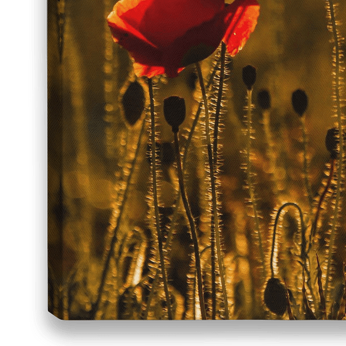 Klaprozen met tegenlicht van de avondzon gefotografeerd.