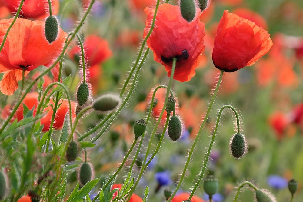 Eind mei zijn de bermen rood gekleurd met de weelderig bloeiende klaproos. Deze fotografeerde ik in Hoogland, bij Amersfoort.