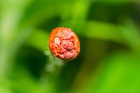 Macro opname van een klaproosje, in de kleuren groen en rood