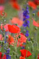 Een kleurrijk schouwspel tussen de klaproosjes en riddersporen. Hiermee is het iedere dag zomer in huis. deze zijn gefotografeerd in het Heemskerkse tuindersgebied.