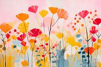 Klaprozen abstract en met warme pastelkleuren. Oranje Rood Roze en Gele klaprozen een typisch Hollands plaatje langs de Dijken in de Uiterwaarden in de Ooijpolder bij Nijmegen.