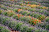klaprozen in een lavendelveld schilderachtige versie. Foto is genomen in Valensole, een gebied in Frankrijk dat bekend staat om zijn lavendelvelden