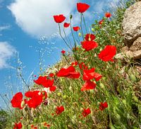 In mei bloeien de klaprozen overal in de Pyreneeën, waar de foto is genomen, en overal in Frankrijk. Het rood van de klaprozen, het blauw van de lucht: niets straalt zoveel lentevreugde uit als deze delicate bloemen!