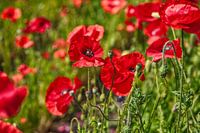 Mooie rode klaprozen in het veld, heldere rode kleuren met fijne detail