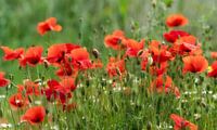 Heerlijk als de tijd van de Klaprozen weer aanbreekt, de lente.... Voor mij is het ieder jaar weer een zoektocht naar de mooiste exemplaren. Een feestje als je dan zo'n mooi groepje bij elkaar aantreft. Ik kan daar zo blij van worden en blijf dan ook fotograferen tot ik denk het plaatje van de dag gemaakt te hebben. De wind gooit vaak roet in het eten, ze zijn zo fragiel dat ieder zuchtje wind de klaprozen doet dansen op hun dunne stengels. Een snelle sluitertijd is dan mijn redding, zoals ook op deze foto.