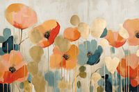 Klaprozen in een veld vol bloemen met een vleugje goud. Kies zelf het formaat en materiaal en maak er een echte blikvanger van voor jouw interieur.