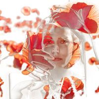 Dit werk is gemaakt uit 17 lagen van verschillende foto's en delen van foto's. Hierdoor ontstaat er een gelaagdheid in mijn werk waarin steeds weer nieuwe dingen ontdekt kunnen worden. Het originele portret is van model Louisa die danst voor mijn camera in mijn studio. Ik heb een techniek ontwikkeld waarbij ik verschillende delen van dat portret gebruik en er vervolgens verschillende andere lagen aan toevoeg. In dit geval zijn er een aantal klaprozen toegevoegd.