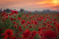 Het schijnt door het rood van de bloemblaadjes van de klaprozen welke tevens een mooi silhouet geven. Een rustgevend en romantisch beeld.