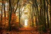 Pad door het herfstbos, Nederland. De herfst is toch wel het mooiste seizoen als het gaat om fotografie. In Nederland hebben we prachtige bossen en ik ben daar dan ook elk jaar weer te vinden rond die tijd van het jaar. De roestbruine kleuren of geel en oranje schakeringen geven je een verlichtend gevoel. Je loopt bijna zwevend door de bossen. Extra speciaal omdat de herfst maar kortstondig valt te beleven. Ik hoop met mijn platen die sfeer over te brengen voor de kijker en elk werk van mij dat in de huiskamers hangt het gevoel oproept om een heerlijke boswandeling te gaan maken.
