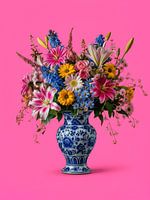 Koop dit digital art kunstwerk Klassiek Pop-Art Stilleven: Zomers boeket op Delfts blauwe vaas van Studio Pieternel als reproductie op canvas, aluminium dibond, (ingelijste) fotoprint, behang en ArtFrame, op maat geprint in Fine-Art kwaliteit.