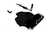 Dit orthochrome stuk combineert een jong meisje met een snelle auto. Je kunt ook een hond in de buurt. Er zijn tientallen en tientallen unieke details om hier op te nemen. Het is gemakkelijk om naar deze vrouw en deze auto te kijken en je de volgende momenten voor te stellen. We kunnen zien dat ze in de auto stapt. We kunnen de hond op de achterbank zien springen. De auto start. Het brult uit het tafereel. Op dit punt kunnen we niet langer volgen. Het enige dat we kunnen doen is ons afvragen of we ooit de kans zullen krijgen om dit jonge Franse meisje weer te zien.