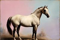 Dit schilderij vangt de tijdloze schoonheid van een paard op met verbluffende precisie. Het imposante dier staat elegant in profiel tegen een rustgevende achtergrond met subtiele pastelkleuren die een gevoel van sereniteit uitstralen. De realistische details van de spierstructuur en de glanzende vacht geven het kunstwerk een authentiek gevoel, alsof het paard zo uit het canvas kan stappen. De achtergrondkleuren, zacht en harmonieus, versterken de klassieke uitstraling van het ontwerp. Dit kunstwerk zou perfect passen in zowel moderne als traditionele interieurs, vooral in ruimtes waar een gevoel van rust en schoonheid gewenst is. Het schilderij nodigt uit tot bewondering van de kracht en elegantie van het paard, en de delicate, tijdloze stijl maakt het tot een veelzijdig kunststuk.