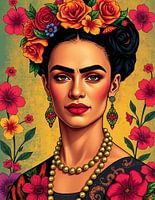 Dit Frida portret versmelt naadloos haar iconische zelf met klassieke abstracte kunst. Levendige kleuren en krachtige penseelstreken roepen haar gepassioneerde geest op, terwijl gestileerde vormen haar unieke identiteit benadrukken. Het samenspel van geometrische vormen en organische lijnen weerspiegelt haar innerlijke strijd en veerkracht, en legt de essentie van haar kunstenaarschap en leven vast.