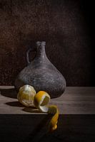 Dit werk " Klassiek stilleven met een fles en citroen " word aangeboden door John van de Gazelle op Werk aan de Muur