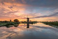 Deze foto is gemaakt bij werelderfgoed Kinderdijk (Zuid-Holland, Nederland). Heel de dag was het bewolkt en had het geregend, maar 's avonds trok de lucht mooi open. Dit leverde een fantastisch gouden uur (golden hour) op. Zeker in combinantie met de dreigende regenwolken op de achtergrond.