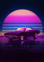 Deel van synthwave outrun auto's poster collectie | Dodge Charger