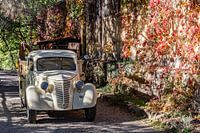 Deze klassieke pick-up gefotografeerd op de Italiaanse biologische wijngaard La Fattoria da Vialla in Toscane staat prachtig te glanzen in de herfstzon. De herfstkleuren van de wijn bladeren zorgen voor een warm sfeervolle compositie. Wij hebben op de wijngaard een Italiaanse lunch gehad en van de verschillende biologische wijnen geproefd. Dit was echt een gastronomisch hoogtepunt.