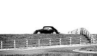 Oldtimer VW op de dijk te Ameland. Mooi item voor de verzamelaars van Volkswagen objecten. Toeristische routes op Ameland zijn nog steeds in trek.