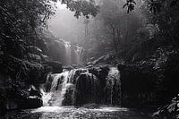 Vind rust en ontspanning bij het kabbelende water van deze serene watervalfoto. Perfect voor in de slaapkamer of badkamer om een moment van zen te creëren.